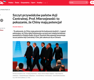 On May 21, 2023, Prof. Dominik Mierzejewski took part in the broadcast "Srodek od środka" on Polish Radio 24. The conversation with Rafał Tomański concerned the two-day summit of the leaders of five Central Asian countries and China in Xi'an. Prof. Mierzejewski pointed out the connections between the city where the summit took place and the history and the period of the greatest prosperity of the Silk Road. According to Prof. Mierzejewski, the summit was intended to show that China is still active. Therefore it wasn't a coincidence it was organised simultaneously with the G7 summit in Japan. The entire material is available to listen to here.
