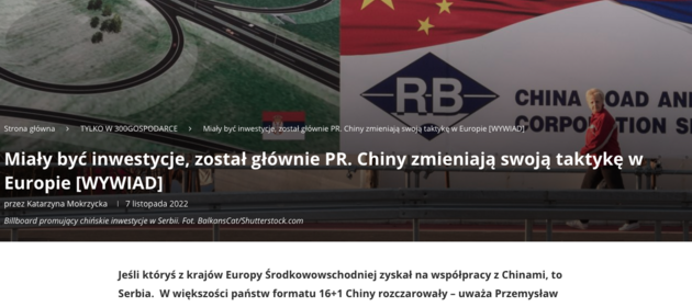 On November 7, 2022, an interview by Katarzyna Mokrzycka with Przemysław Ciborek was published on the "300 Gospodarka" website. The conversation was devoted to cooperation between the countries of Central and Eastern Europe and China. The topics discussed included, among others, issues related to Chinese investments in the region, as well as political and interpersonal relations within the 14+1 format. The interview is available here.