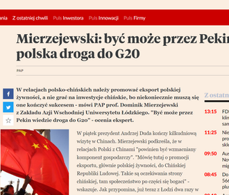 On October 27, 2015, in an interview with the Polish Press Agency, Prof. Mierzejewski concluded that Poland has a chance to join the G20 through active cooperation with Beijing. The recording is available here. More information here.